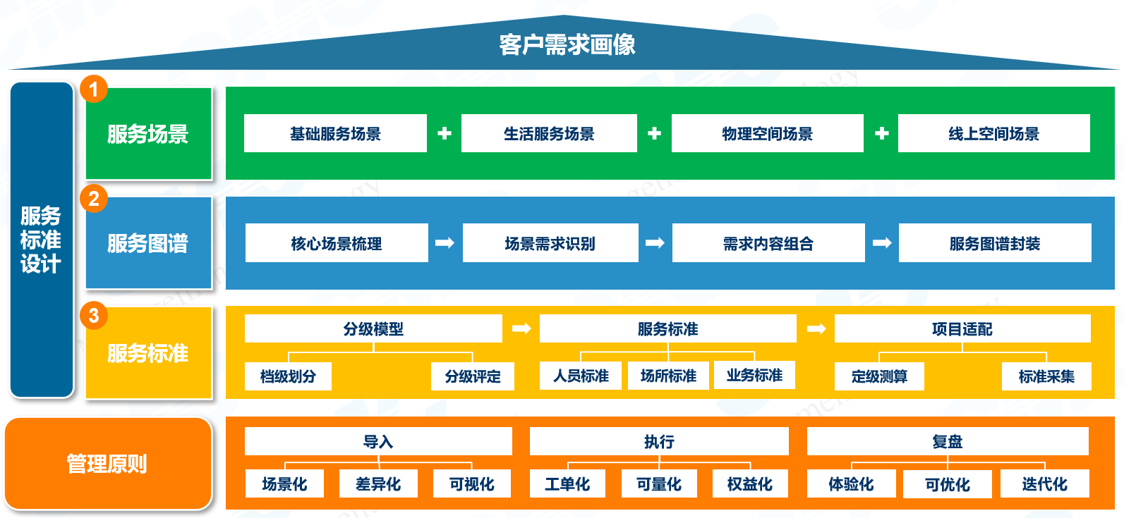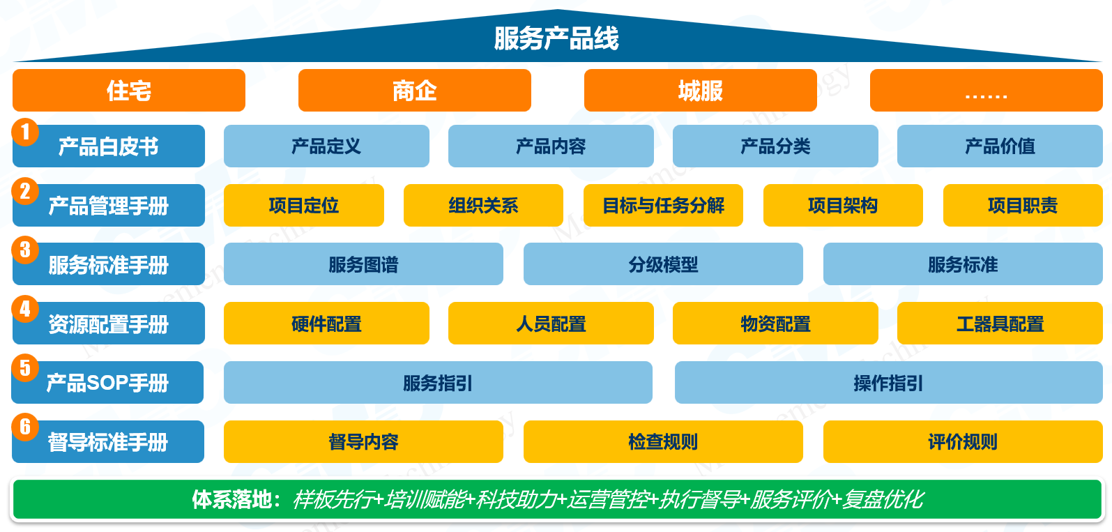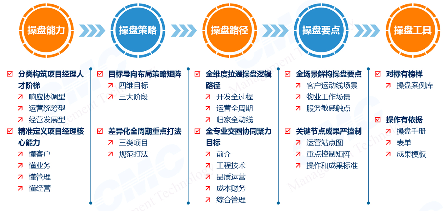 产品管理层面-共四阶段构建产品体系,设计服务标准体系,匹配操盘体系、打造标杆项目: